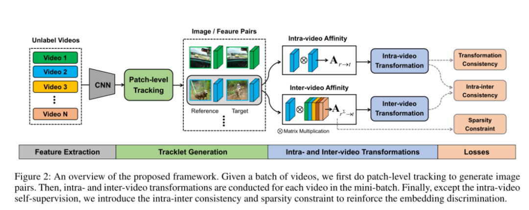 摘要:在本文中,我们专注于使用未标记的视频来进行视觉对应性自监督学习。我们的方法同时考虑了视频内和视频间表示关联,以进行可靠的对应估计。视频内学习通过帧对相似性在单个视频内的各个帧之间转换图像内容。为了获得实例级分离的判别表示,我们在视频内分析的基础上,构建了视频间亲和性,以促进跨不同视频的对比转换。通过强制视频内和视频间级别之间的转换一致性,可以很好地保留细粒度的对应关系,并有效地增强实例级的特征辨别力。我们的简单框架优于包括视频目标跟踪(VOT),视频目标分割(VOS),姿势关键点跟踪等在内的可视任务的自监督通信方法。值得一提的是,与完全监督的亲和力表示(例如ResNet)并执行与针对特定任务(例如VOT和VOS)设计的最新有监督算法相比,我们的方法也具有相应的竞争力。