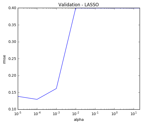 lasso_cv.plot(title = "Validation - LASSO", logx=True)