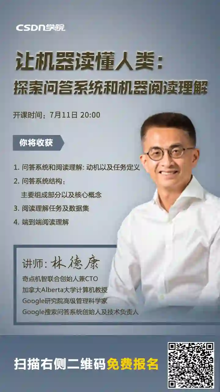 基于此,CSDN学院邀请“2018机器阅读理解技术竞赛”冠军团队—— 奇点机智(Naturali)开设公开课,为大家技术进阶提供另一重思考!