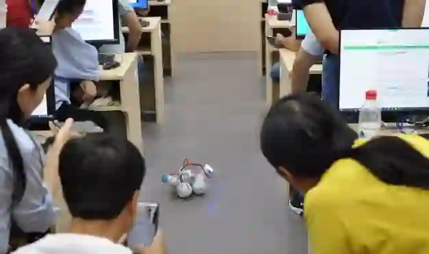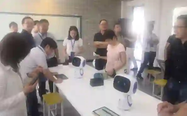 学员们观看运行的智能机器人
