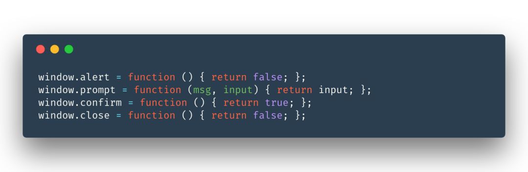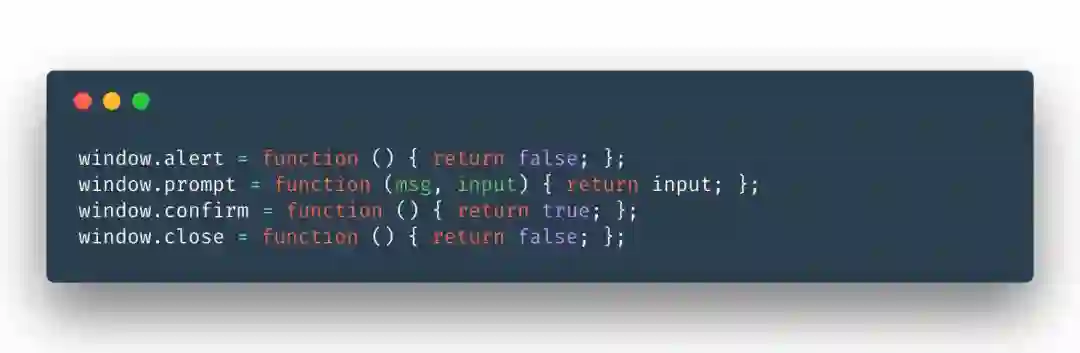 我们先把一些会导致页面阻塞、关闭的函数给 Hook 了,例如: