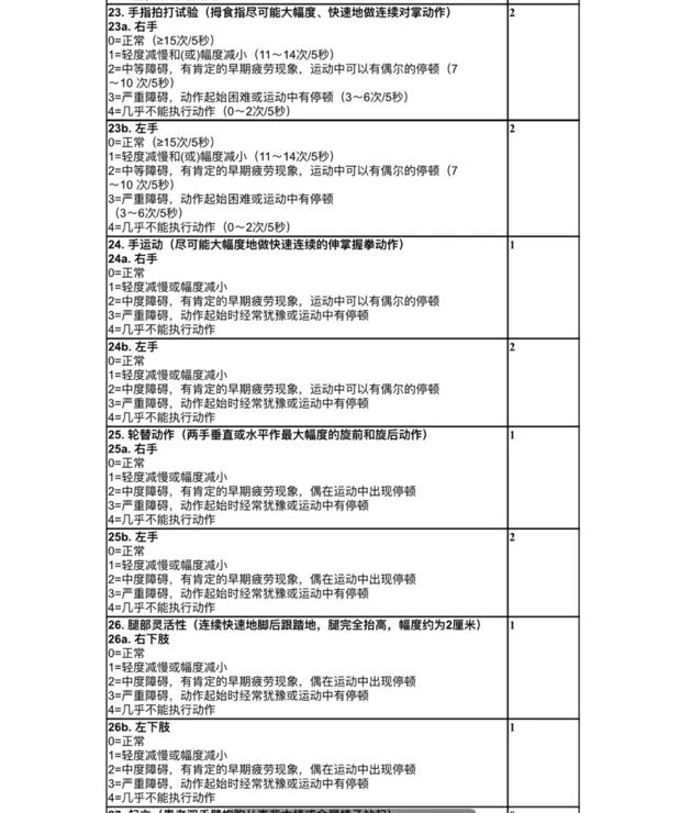 其中一种诊断方式就是 UPDRS(帕金森症综合评分表),图片来自腾讯: