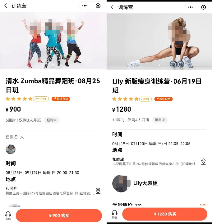 Lily新版瘦身训练营(10节课-1280元):开课时间6月19日-7月20日每周三/日21:05-22:05,4人开班,主要以瘦身为目的课程。