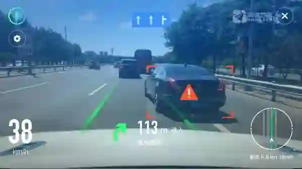 图1 高德地图车载AR导航可识别前方车辆并提醒