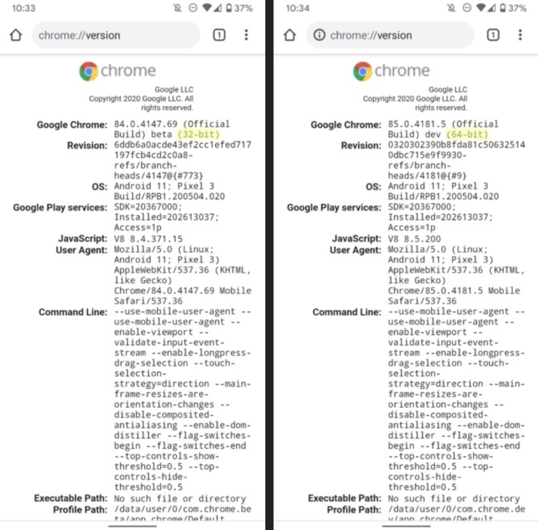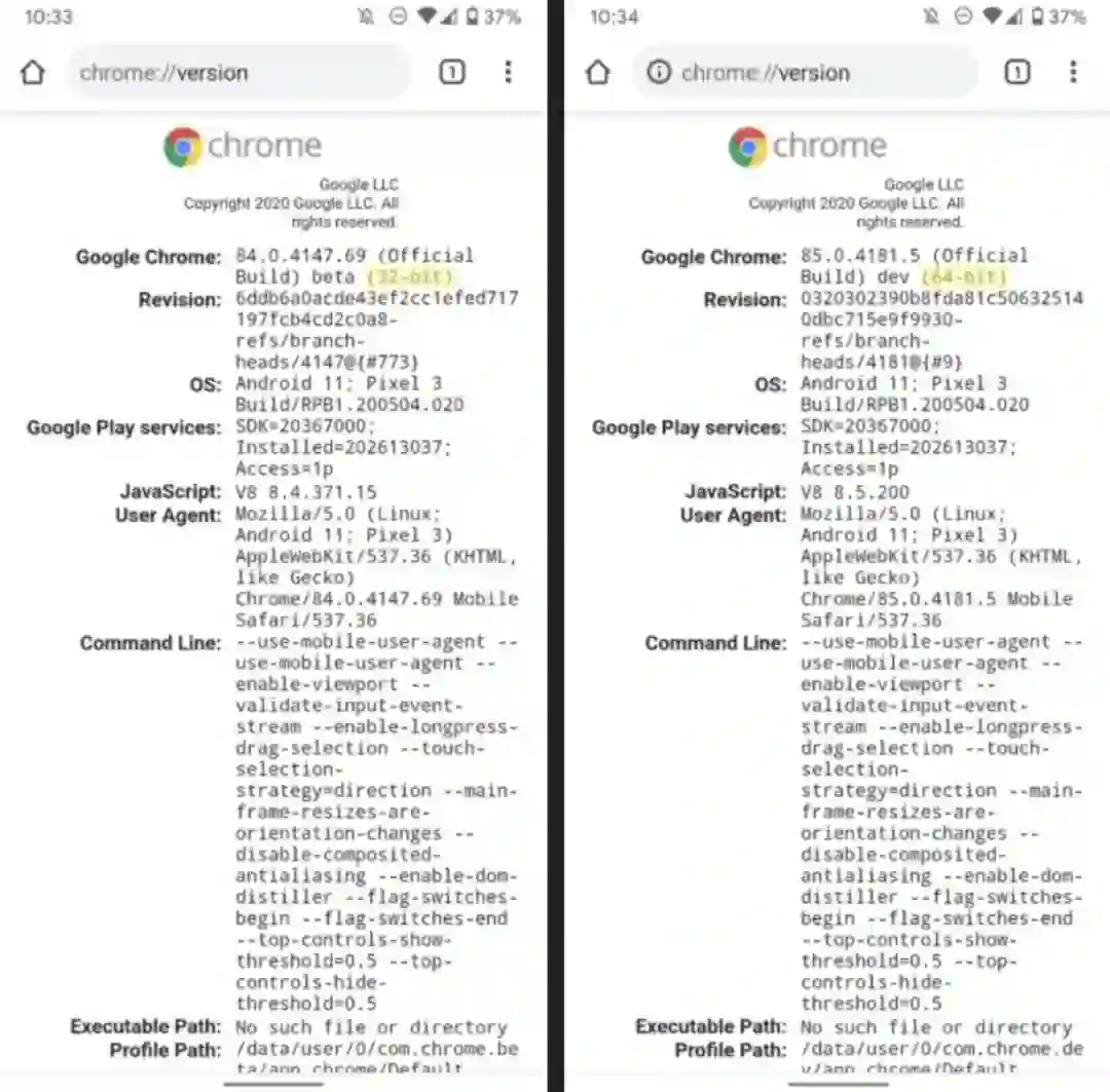 首先需要补充的背景知识在于,Android 系统自 2014 年推出 Android 5.0 Lollipop 起便正式支持了 64 位处理器架构的设备,同时还提出过所有上架 Play 应用商店的应用必须提供 64 位架构支持这种强制要求——但 Chrome 浏览器自身,却是直到这次更新才完成从兼容 32 位架构应用向兼容 64 位架构应用的转换。