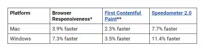 根据 Chrome 开发团队的测试,采用配置文件引导优化的 Chrome 在页面加载速度上提升近 10%,尤其是在处理大量标签页时性能提升明显。