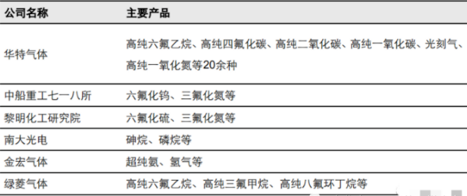 国内特气公司已实现进口替代并规模化供应的产品,图源:华特气体招股书