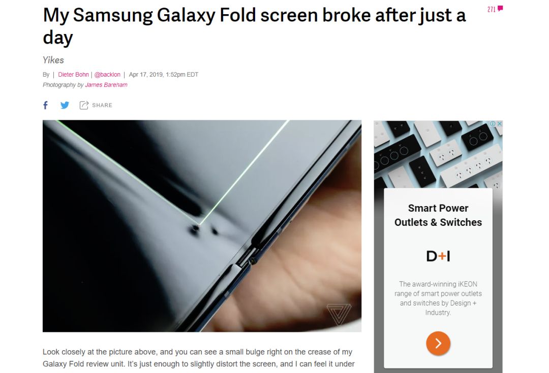 作为今年三星的重磅新品,三星Galaxy Fold因为其折叠屏的设计而获得了大量的关注,但是,这款产品还未大规模上市,仅在媒体体验阶段就遇到了一些问题。