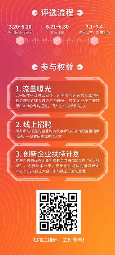 我们相信,榜样的力量将成为促进AI行业不断发展的重要基石,而CSDN将与这些榜样一起,助力AI时代的「新基建」。欢迎感兴趣的企业扫描下方的
