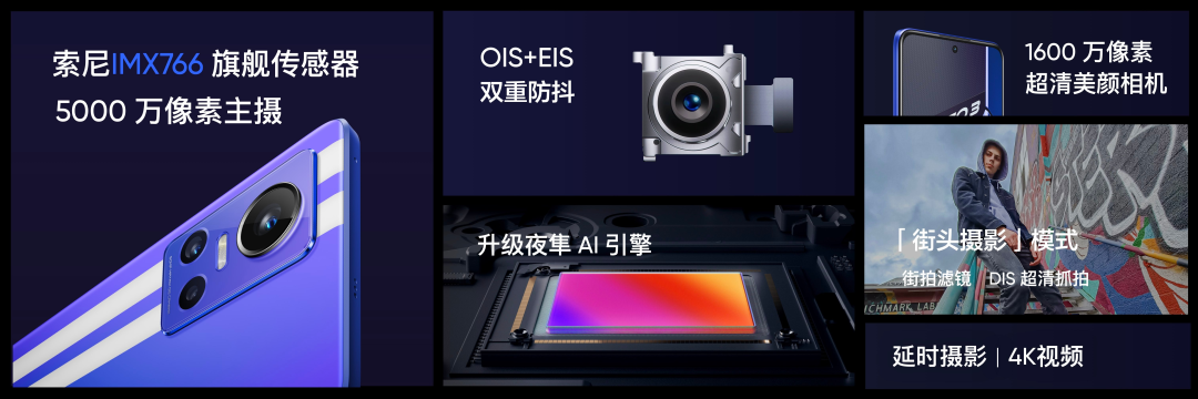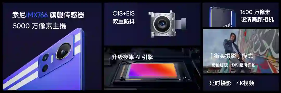 影像方面,realme GT Neo3 搭载后置三摄,5000 万像素主摄采用 IMX766 传感器,支持 OIS+EIS 双重防抖。前置 1600 万像素相机,配备夜隼 AI 引擎,夜景成像速度提升 62%,暗光对焦能力提升 94%。其他方面,realme GT Neo3 搭载 X 轴线性马达,支持 4D 游戏震感。还支持智能基站切换技术、Wireless Burst 蓝牙 / Wi-Fi 智能协同技术、低延迟双卡并行技术、低延迟下载优化技术。