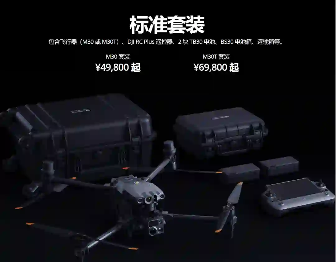 经纬 M30 系列采用多重冗余系统,具体包括飞控传感器冗余、感知系统冗余、动力系统双链路冗余、双智能电池冗余、图传链路冗余等。支持 DJI Cellular 模块,4G 网络图传与 O3 图传行业版可同时工作。高度集成了广角、变焦、热成像(M30T)和及激光测距传感器,轻松应对各种实际情况。经纬 M30 系列包括 M30、M30T 两款型号,套装价分别为 49800 元、69800 元。