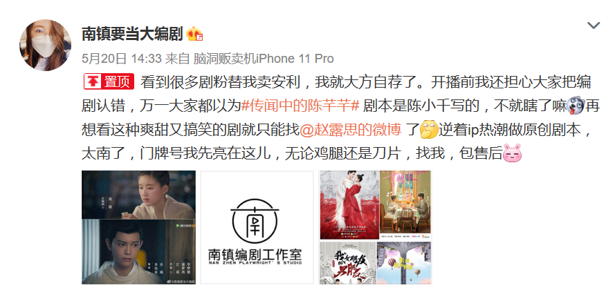 《传闻中的陈芊芊》热播之际,编剧南镇在一条自陈身份的微博中感叹:“逆着IP热潮做原创剧本,太南了。”