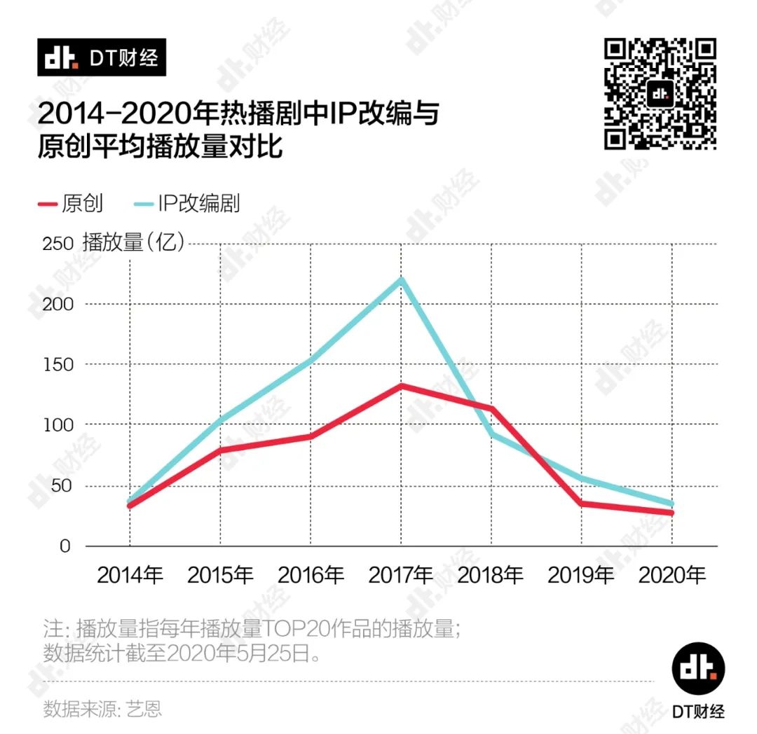 DT财经细数了2014年以来IP改编剧和原创剧的情况,想看看IP改编剧是怎样一步步垄断了我们的观剧选择?国产剧真的就离不开网文IP了吗?