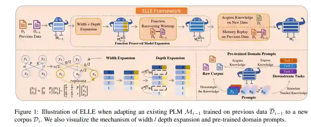 泰禹嘉的分享主题是「面向新数据的语言模型持续高效预训练」,主要围绕他们的 ACL 2022 接收论文《ELLE: Efficient Lifelong Pre-training for Emerging Data》展开。在这篇论文中,他们提出了 ELLE,旨在利用新出现的数据对模型进行有效的终身预训练。具体而言,ELLE 包括:(1) function preserved model expansion,灵活扩展现有 PLM 的宽度和深度,提高知识获取效率;(2)pretrained domain prompts ,将预训练过程中学习到的通用知识进行分解,激发出适合下游任务的知识。