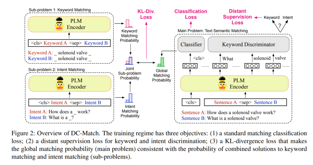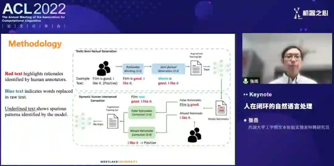 论文分享 论文分享环节也分为上、下午两场。在上午的分享中,腾讯 QQ 浏览器搜索技术部高级工程师唐萌、阿里达摩院算法工程师魏相鹏、清华交叉信息研究院博士生周璟、香港中文大学计算机系博士生 / 腾讯 AI Lab 研究员王文轩以及清华大学博士生泰禹嘉分享了他们的最新成果。 唐萌的分享主题是「基于区分开关键词和意图词的文本语义匹配」,主要围绕他们的 ACL 2022 接收论文《Divide and Conquer: Text Semantic Matching with Disentangled Keywords and Intents》展开。在这项工作中,他们提出了一种简单而有效的文本语义匹配训练策略,采用分而治之的方法将关键词和意图词区分开来。他们的方法可以很容易地与预训练语言模型结合在一起,而不会影响它们的推理效率。