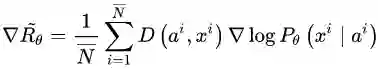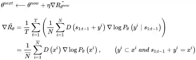 不难看出,此式子与 4.1 节中的变化梯度仅一字之差,只是把 “打分器” 给出的奖励得分 换成了鉴别器认为生成对话来自真人的概率得分