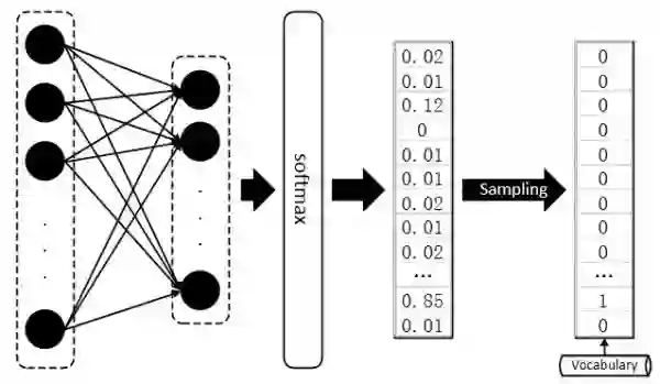 文本数据可就不一样了,做文本的同学都知道,假设我们的词库(Vocabulary)大小为 1000,那么每当我们预测下一个出现的词时,理应得到的是一个 One-hot 的 Vector,这个 Vector 中有 999 项是 0,只有一项是 1,而这一项就代表词库中的某个词。然而,真正的隔阂在于,我们每次用无论什么分类器或者神经网络得到的直接结果,都是一个 1000 维的概率分布,而非正正好好是一个 One-hot 的 Vector,即便是使用 softmax 作为输出,顶多也只能得到某一维上特别大,其余维上特别小的情况,而将这种输出结果过渡到 One-hot vector 然后再从词库中查询出对应 index 的词,这样的操作被称为 “Sampling”,通常,我们找出值最大的那一项设其为 1,其余为 0。