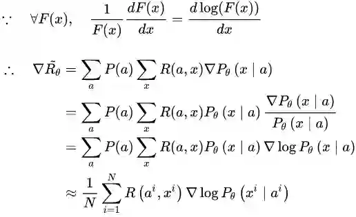 借助复合函数的求导法则,继续推导奖励的变化梯度,