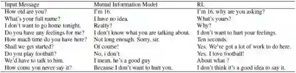 其实也有人将 RL 应用于对话生成的训练当中 [16],因为对话生成任务本身非常符合强化学习的运行机理(让人类满意,拿奖励)。设,根据输入句子 a ,返回的回答 x 从人类得到的奖励记为 R(a,x) ,而 Encoder-Decoder 对话模型服从的参数被统一记为 θ ,则基于 RL 的目标函数说白了就是最大化生成对话的期望奖励,其中 表示在参数 θ 下,一组对话 (a,x) 出现的概率。