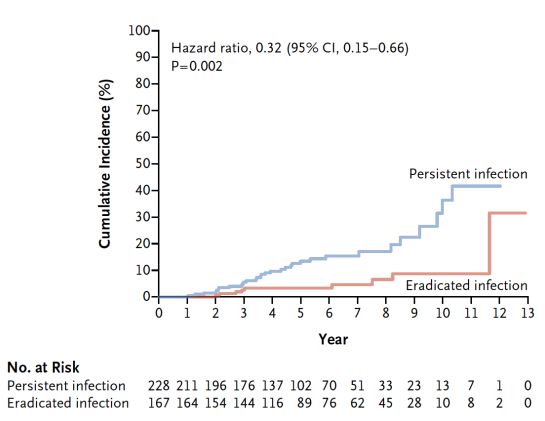 Helicobacter pylori Therapy for the Prevention of Metachronous Gastric Cancer. N Engl J Med 2018;378:1085-95.
