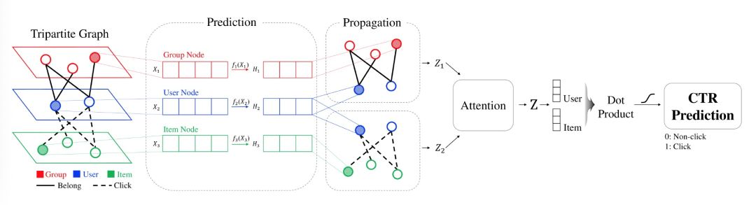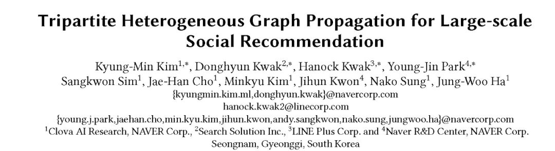 - Tripartite Heterogeneous Graph Propagation for Large-scale Social Recommendation,提出一种应用于社会化推荐系统的异构图传播结构。