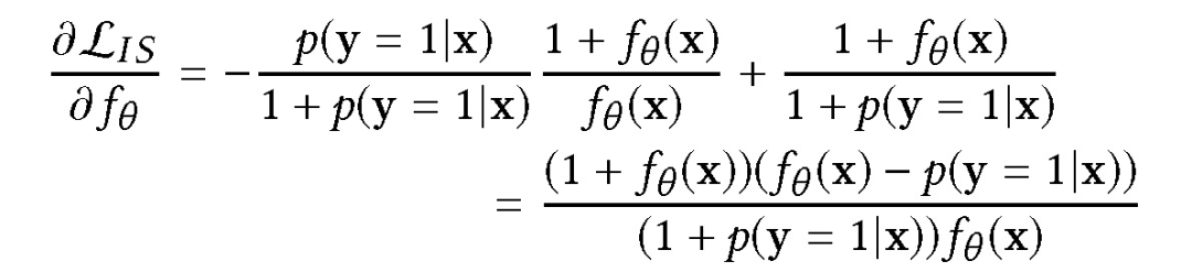 当∂L_IS/∂f_θ = 0 时,f_θ (x) = p(y = 1|x)