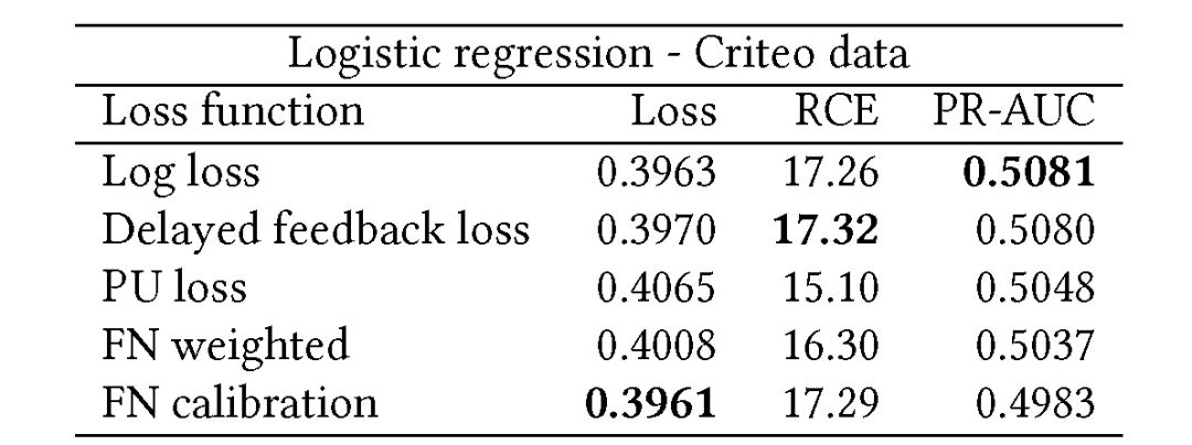 表 1. 基于公共 Criteo 数据的线性模型的离线结果。