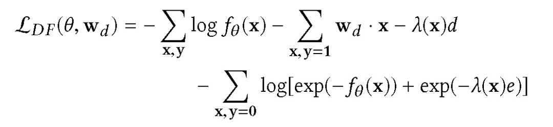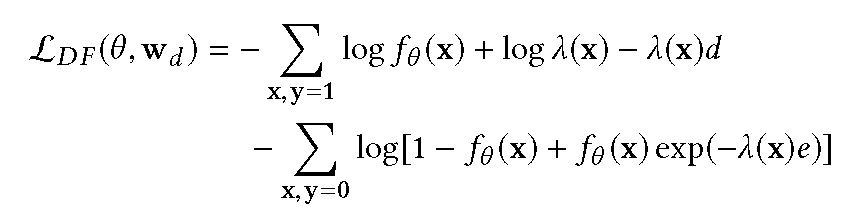在延迟反馈损失函数中,假定时滞服从指数分布,并将此模型与 Logistic 回归或深度模型联合训练。参数θ和 w_d 的正则对数似然优化为: