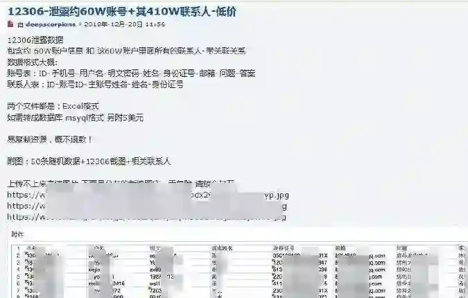 @新京报【12306旅客信息被公开出售,官方回应:为第三方泄漏】12月28日上午,有人在网上宣称12306平台旅客信息泄漏,低价出售410万旅客信息,还免费公开部分账号供买家验证。