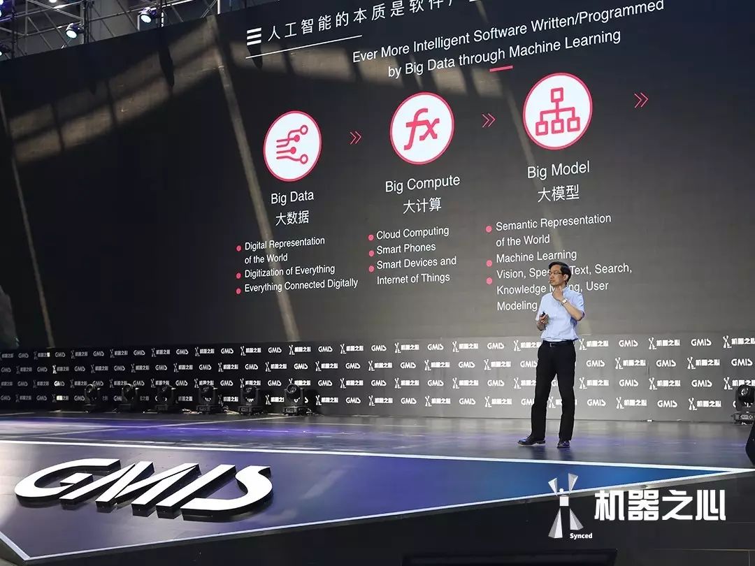 第四范式创始人兼 CEO 戴文渊则分享了如何使机器学习的过程变得更简单,如何使企业在降低成本的同时拥有人工智能的能力。他认为如今业务专家在设计营销、金融、风控、医疗各个领域的业务规律。但在各行各业,机器都有可能超越人。他说:「机器比人有更强的精力,能写出更细的规则,因而它能做得更好更精细。如果你能用机器基于数据写出超过一千万条规则,VC 维超过一千万,人基本上没有办法跟机器抗衡了。这就是机器能在各个领域打败人的原因。」但机器要超越人类,有一定的前提条件,戴文渊将其总结为五个元素:大数据、外部的反馈、算法的能力、计算的能力、商业需求的带动。