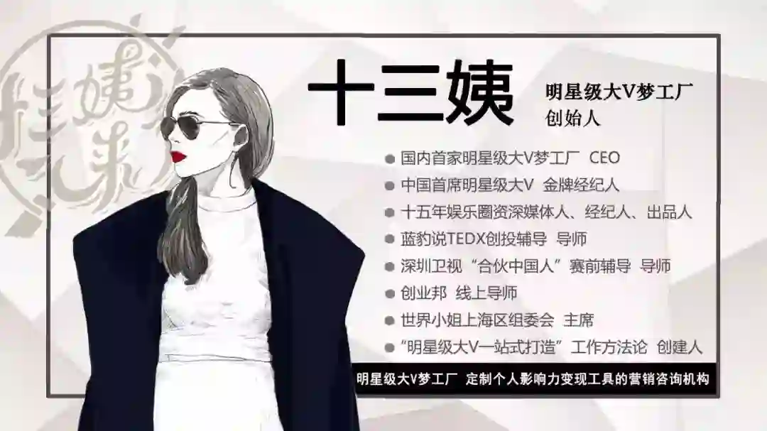 她是中国娱商跨界打劫第一人,人称“十三姨”。