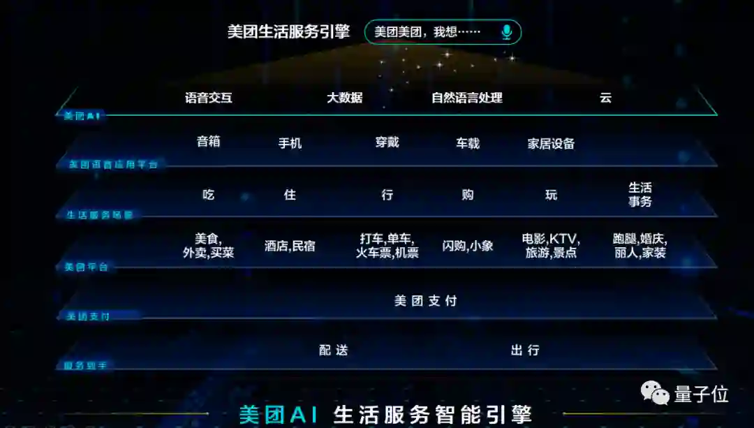 最具代表性的,莫过于美团在去年开始对外发布美团语音能力,其结合“智能交互”技术打造的服务引擎,已经成为美团AI应用中最广泛的产品之一。
