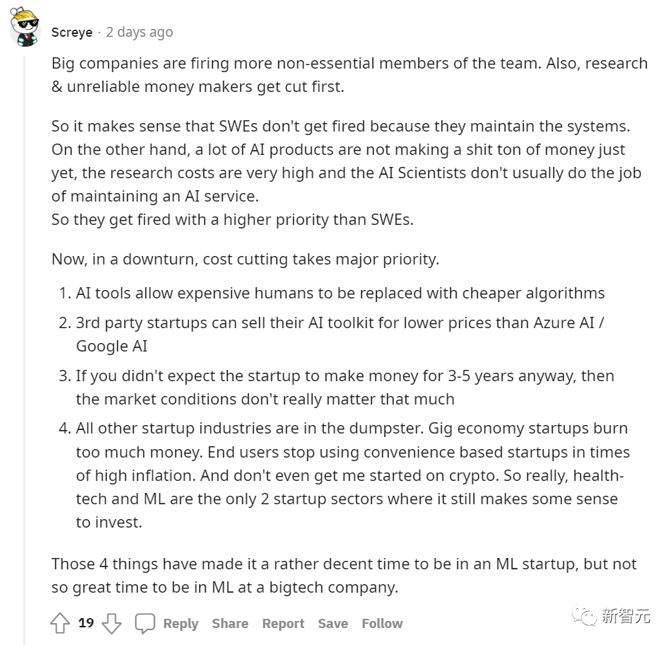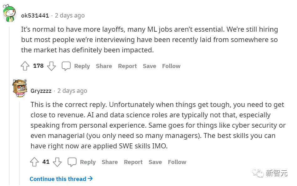 现在还是有很多公司对ML人才有需求,这不会因为MAANG为摆脱臃肿而大裁员而改变。也就是说,工作可能至少会变得「更有竞争性」,因为被解雇的人将会重新找工作。