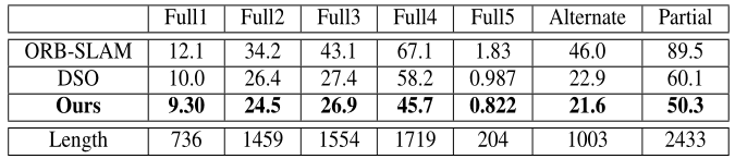 表5: 轨迹的RMSE绝对值,单位为米