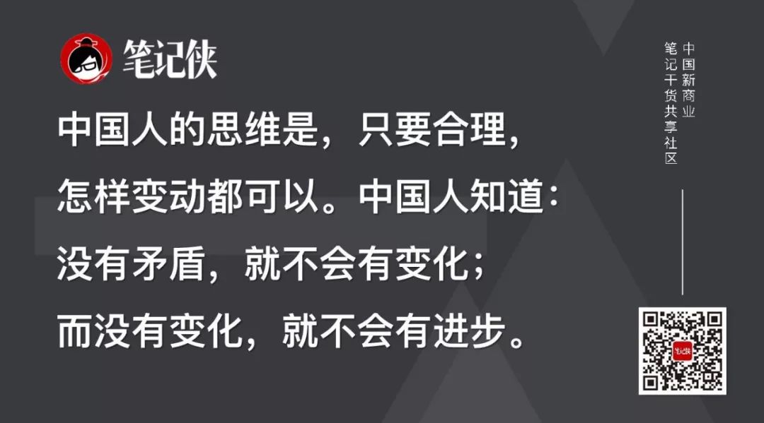 要随着变化而变动,中国人的思维是:只要合理,怎样变动都可以。中国人知道,没有矛盾,就不会有变化;而没有变化,就不会有进步。