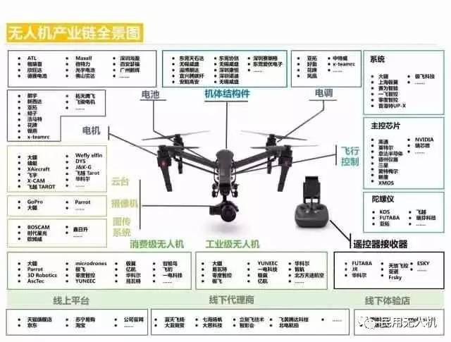 本文综合了无人机供业链各环节所需部件,并将各环节主要供应商列举出来,仅供参考。
