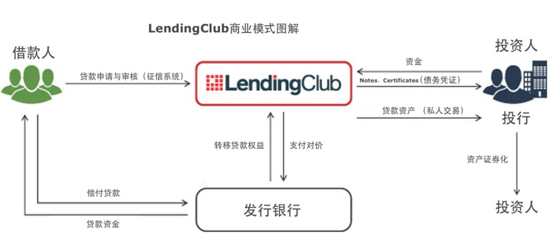 Lending Club 代表的这种商业模式,相当于通过资金“掮客”沟通资金与资产两端,平台对投资活动不进行担保,在整个交易流程中仅作为一个信息中介存在。