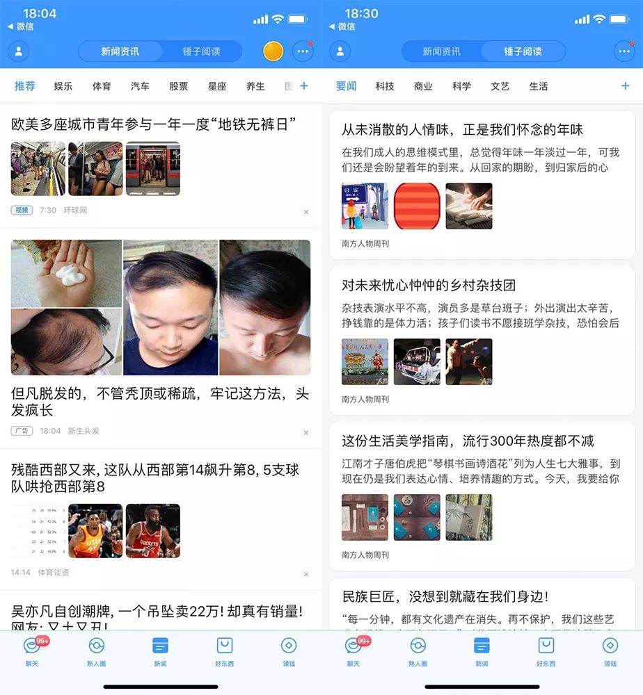 正如我们此前所说,聊天宝的模式本质是“子弹短信+今日头条/趣头条+拼多多”,说得好听点就是能够在一款软件之中提供一站式的服务,说得难听点,那就是一股脑填鸭,把当下热门的内容都往里面塞。