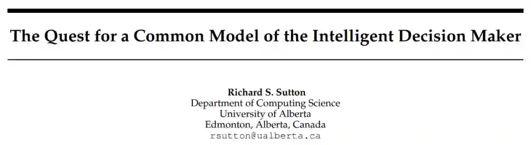 近日,阿尔伯塔大学计算机科学系教授、强化学习先驱 Richard S. Sutton 在其最新论文《The Quest for a Common Model of the Intelligent Decision Maker》中通过提出决策者的观点来加强和深化这一前提,该观点在心理学、人工智能、经济学、控制理论和神经科学等领域得到实质和广泛的应用,他称之为