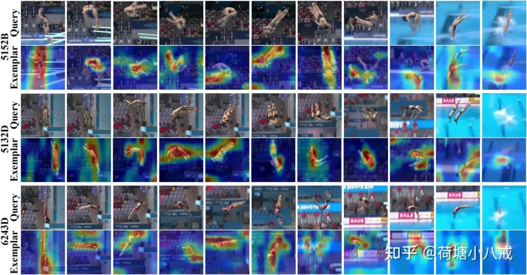 成对查询和参考示例之间的过程感知交叉注意的可视化。