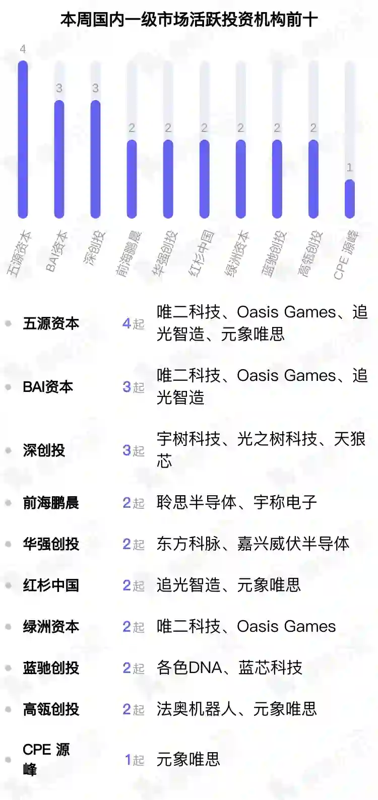 五源资本投资4起,BAI资本投资3起,深创投投资3起