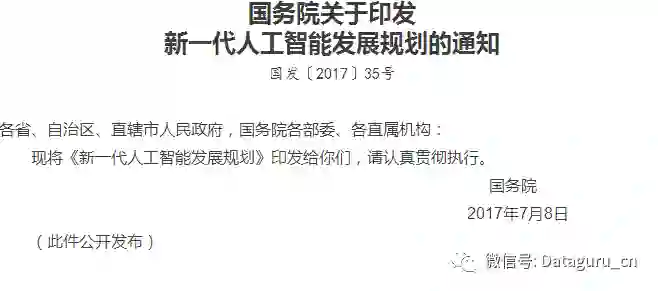 人工智能的迅速发展将深刻改变人类社会生活、改变世界。为抢抓人工智能发展的重大战略机遇,构筑我国人工智能发展的先发优势,加快建设创新型国家和世界科技强国,按照党中央、国务院部署要求,制定本规划。