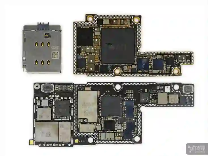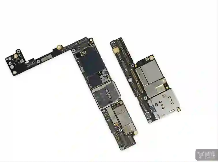 iFixit 将两层主板分离之后发现,iPhone X 主板总面积是 iPhone 8 Plus 主板区域面积的 135%。