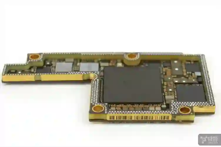 为了在尺寸有限的主板上投入更多的技术,苹果将主板折成了两半,两个部分是焊接在一起的,需要将它们分离开来。(这是我们首次在 iPhone 上看到双层板)