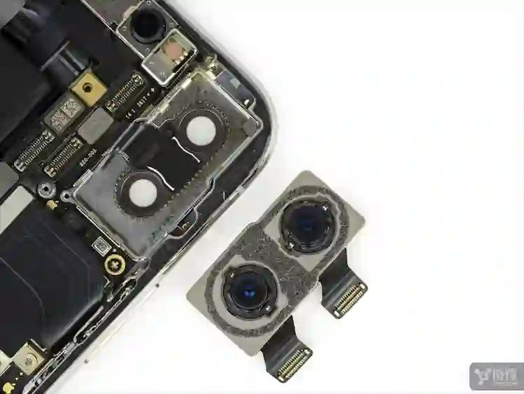 双后置摄像头拥有一个相当结实的支架,看起来苹果为这些精密的部件提供了侧气囊式的支撑。