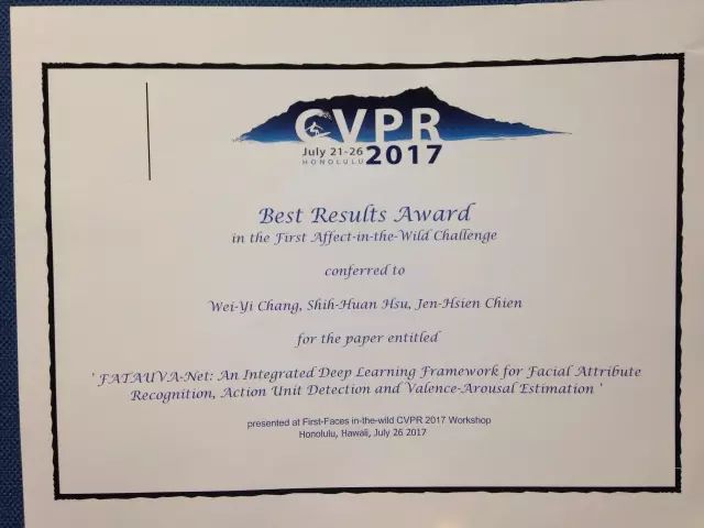 模型在 CVPR 2017 的 Affect-in-the-wild 挑战中拿到了最佳效果奖。