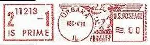 1963年,美国数学家吉里斯(Gillies)证明M9689和M9941是素数,这已经是第21和22个梅森素数。1963年9月6日晚上8点,当吉里斯通过大型计算机找到第23个梅森素数M11213时,美国广播公司(ABC)中断了正常的节目播放,第一时间发布了这一重要消息,发现这一素数的美国伊利诺伊大学数学系全体师生更是激动地把所有从系里发出的信件都敲上了“2^11213-1是个素数”的邮戳。
