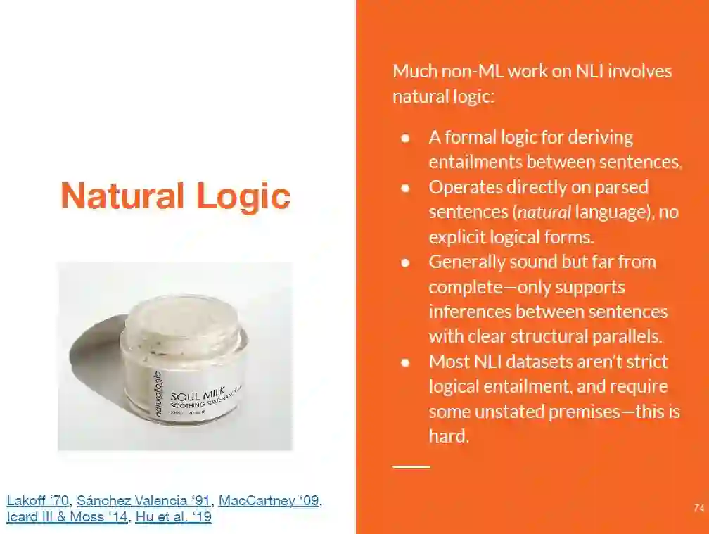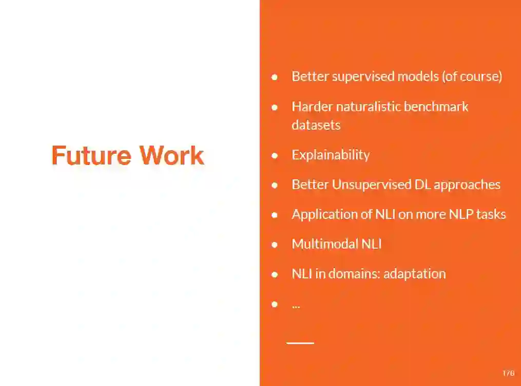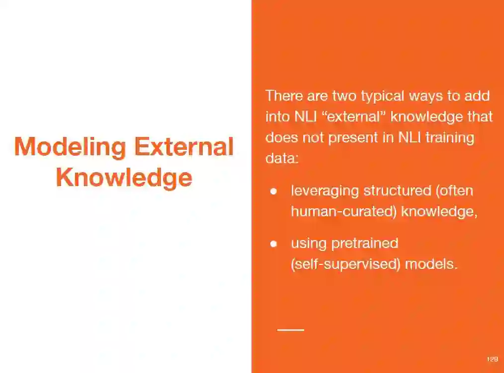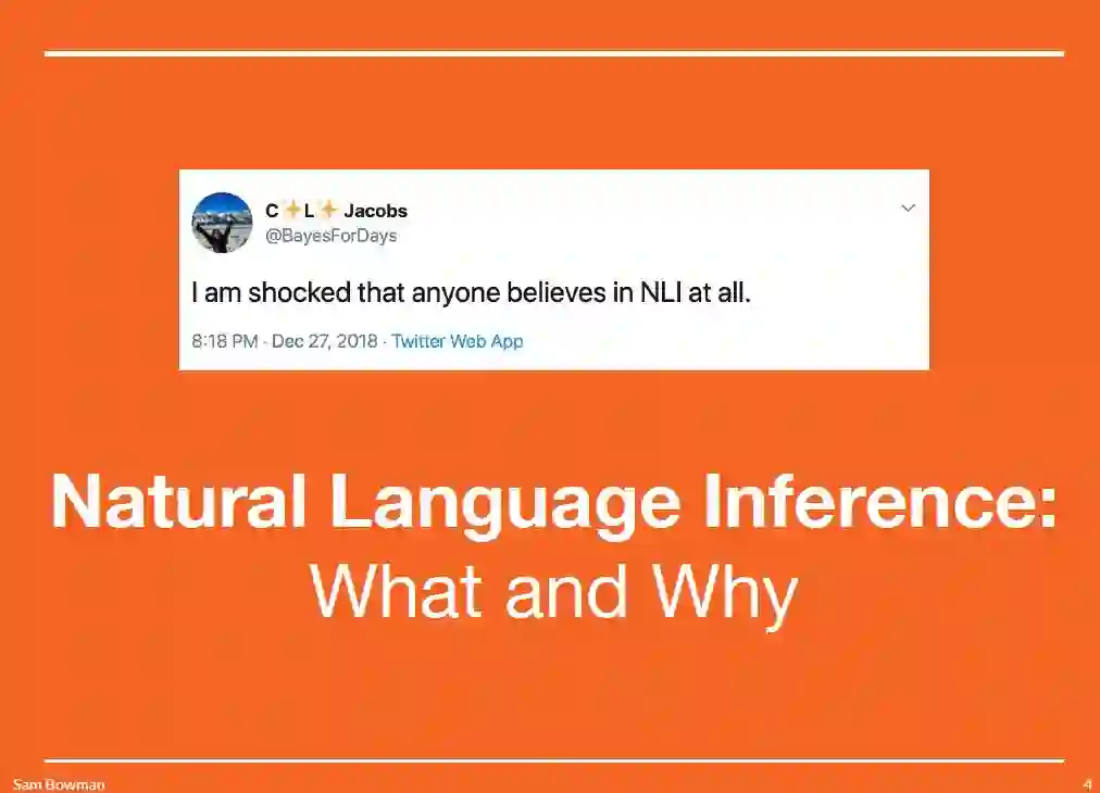 本教程讨论关于NLI的前沿研究,包括数据集开发的最新进展、前沿的深度学习模型,以及最近关于使用NLI理解语言理解和推理的深度学习模型的能力和限制的研究重点。