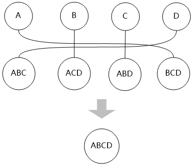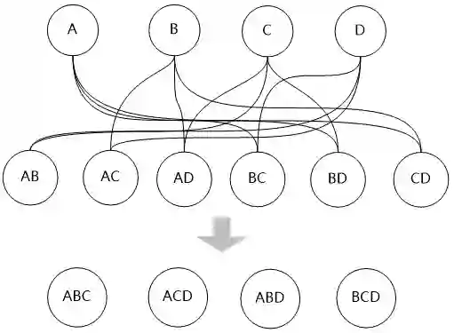“动态规划方法首先考虑两个表的连接,其中优先考虑有连接关系的表进行连接,两个表的连接可以建立一个新的表,我们把这些新表叫做第二层。”牛二哥通过连线,产生了一些新的“表”。