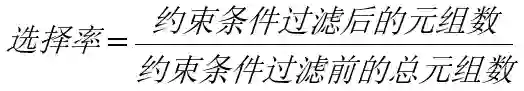 牛二哥点了点头说:“嗯,通过统计信息,代价估算系统就可以了解一个表有多少行数据、用了多少个数据页面、某个值出现的频率等等,然后就能根据这些信息计算出一个约束条件能过滤掉多少数据,这种约束条件过滤出的数据占总数据量的比例称之为‘选择率’,所谓选择率就是一个比例,它的公式是这样的。”说着牛二哥继续在纸上写下了选择率的公式:
